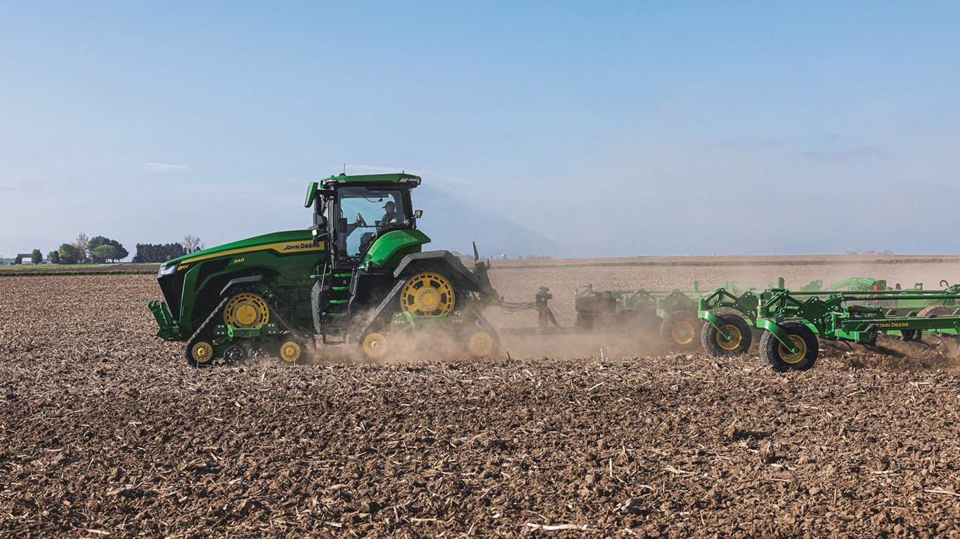 Az új 8R nagy teljesítményű traktorok biztosítják azt a vonóerőt, amelyre Önnek a legnehezebb munkagépekhez szüksége van. A csúcsteljesítményű IPM-mel a JD14 motor akár 634 LE teljesítményt is képes leadni pontosan akkor, amikor a maximális termelékenységhez bármilyen körülmények között szükség van rá. Az egyedülálló eAutoPowr™ fokozatmentes gyorsítást és akár 8%-kal jobb erőátvitelt biztosít a standard hidromechanikus fokozatmentes sebességváltókhoz képest*.